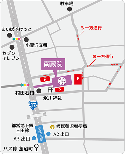 南蔵院へのアクセス・交通案内です。南蔵院へはお車、地下鉄、バスでお越しいただけます。