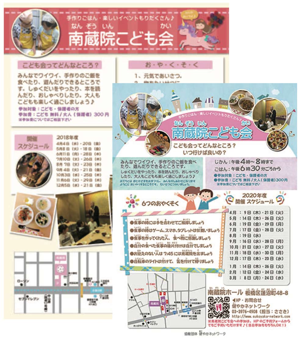 ママさんスタッフやご近所の方々の皆様で食材の発注、名簿管理、HPなど広報媒体へのアップなどを行なっておりました。南蔵院こども会に通っていたお子様も成長されるとボランティア活動に参加するようになるなど、 お子様の成長を共にみまもり、育む場としても機能しておりました。